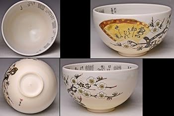 九谷焼 田村金星作 毛筆 細字 抹茶碗 管理K297 共箱 黄布 栞付き 九谷焼 田村金星作 毛筆 細字 抹茶碗 管理K297 共箱 黄布 栞付き